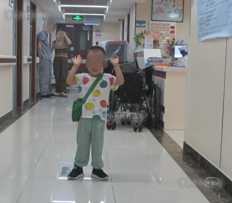 住院治疗73天即2022年9月11日,患儿大小便已变正常,变得能自己走路,但右腿走路差些(图-16)。