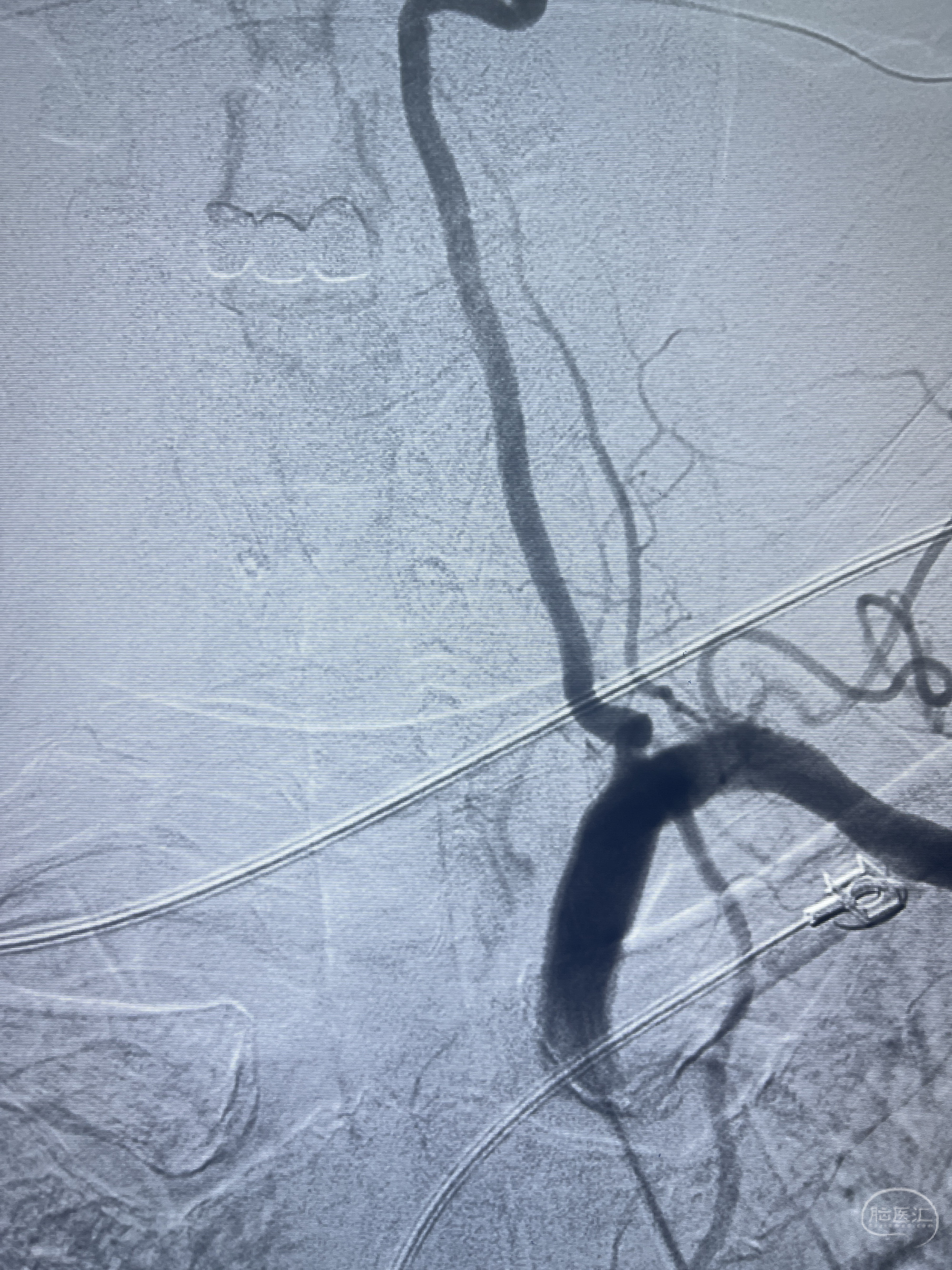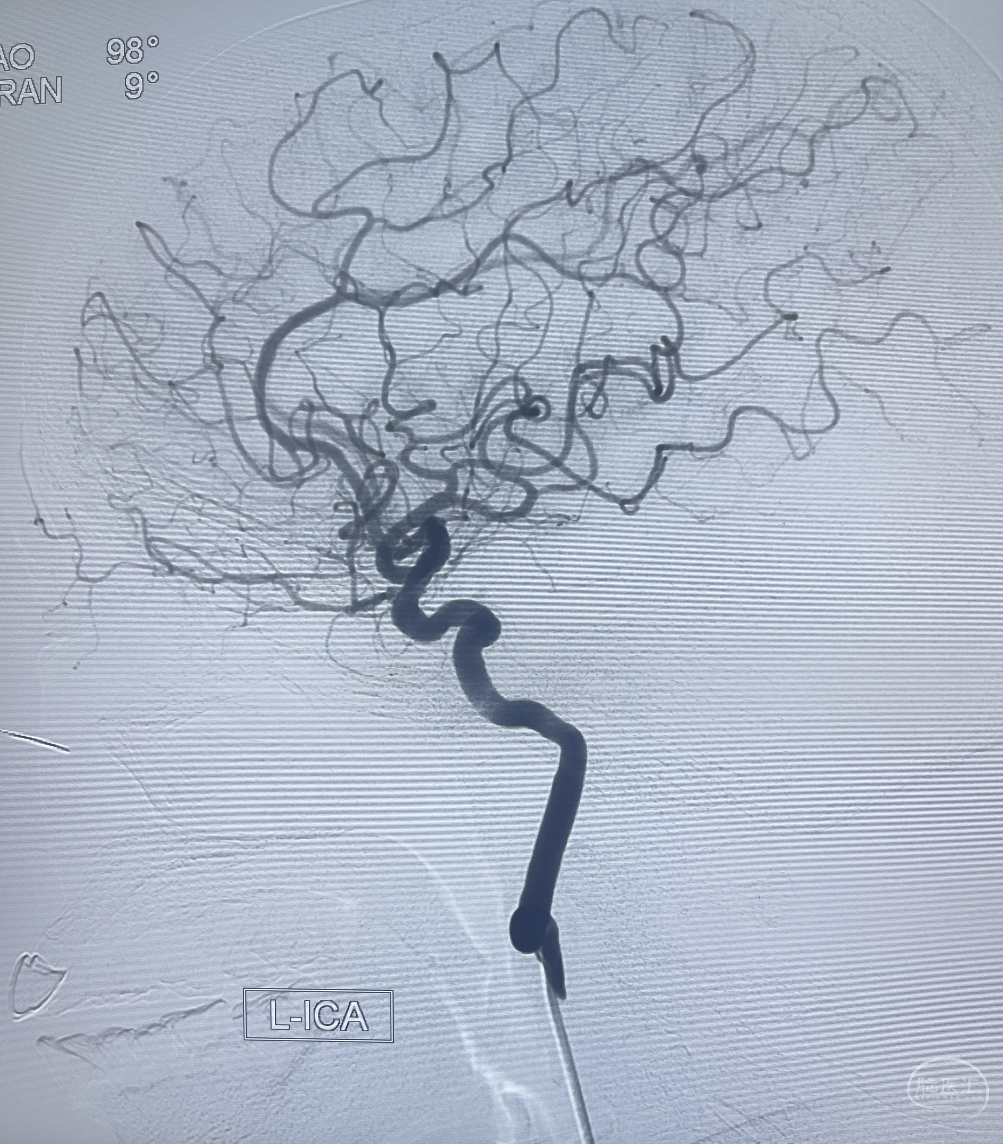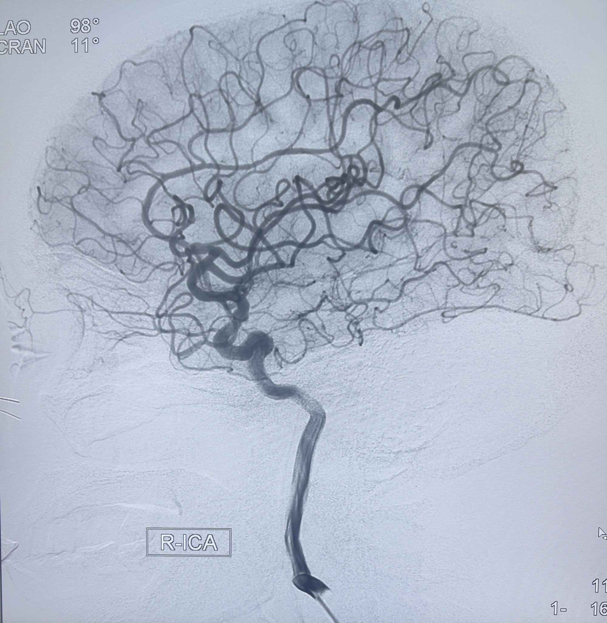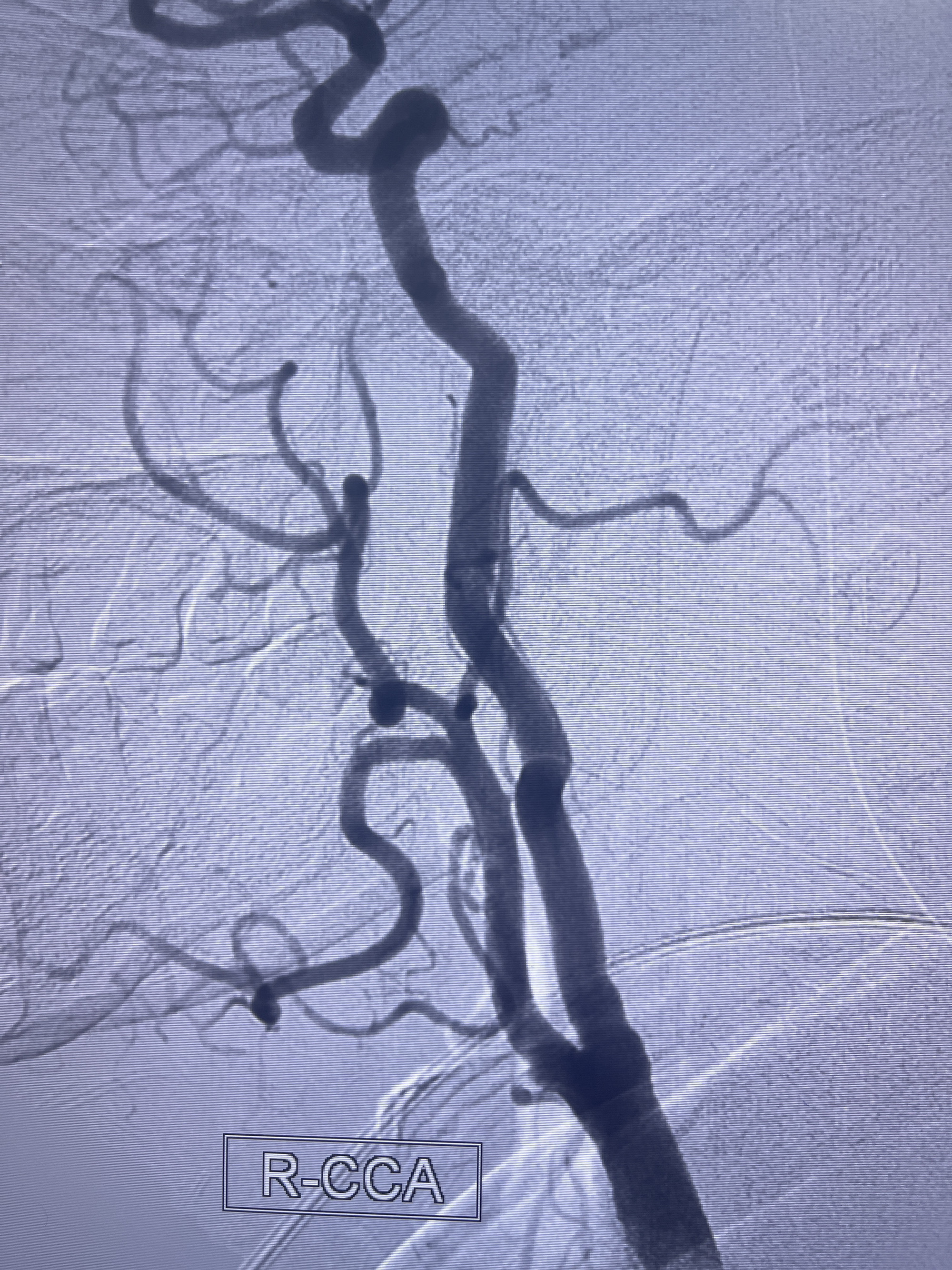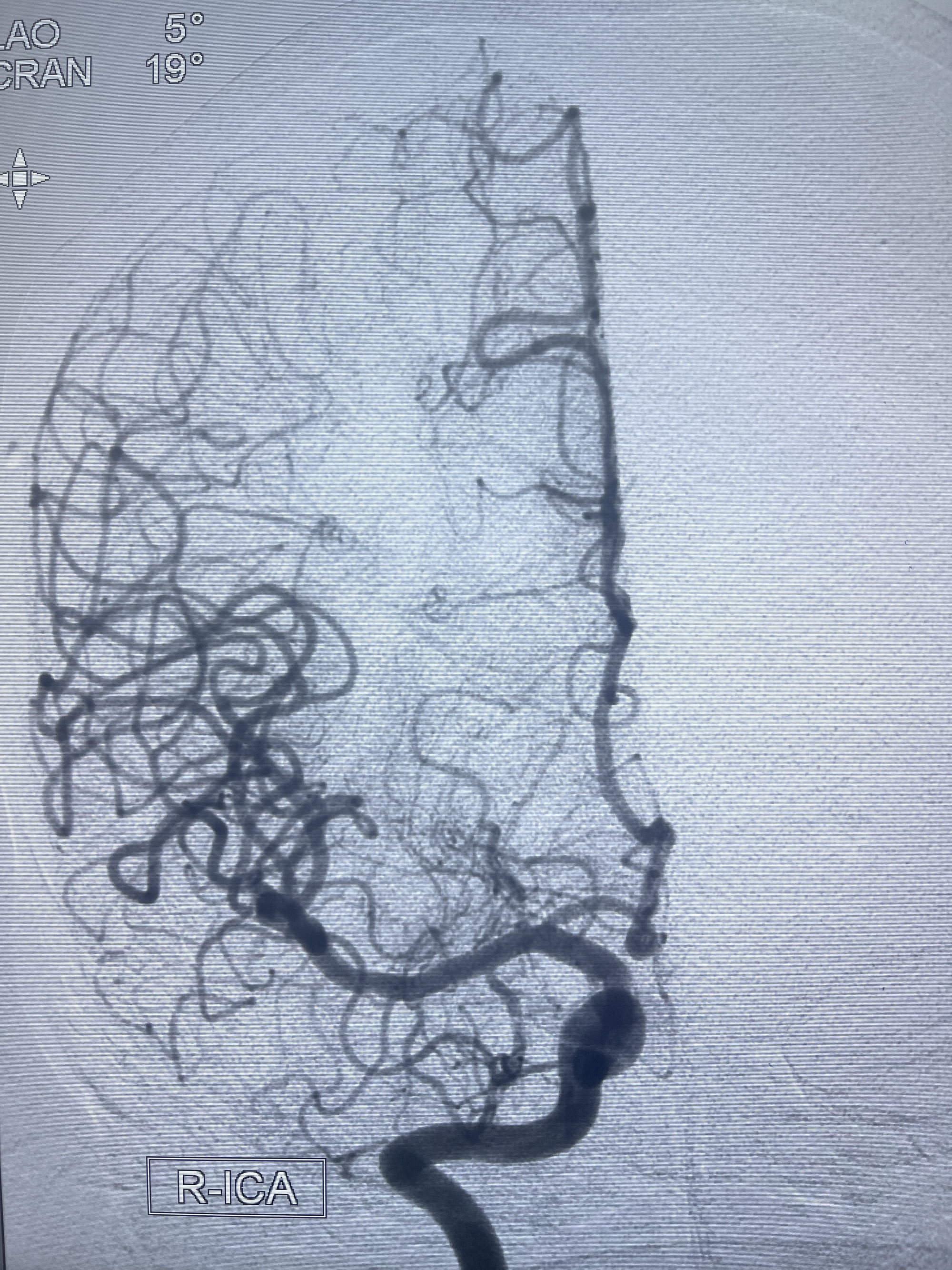 202.04.28脑血管造影:右侧大脑后动脉远段闭塞,右侧椎动脉V4段可见“囊状造影剂填充影”,大小7.64*7.65mm,可见PICA由动脉瘤发出;