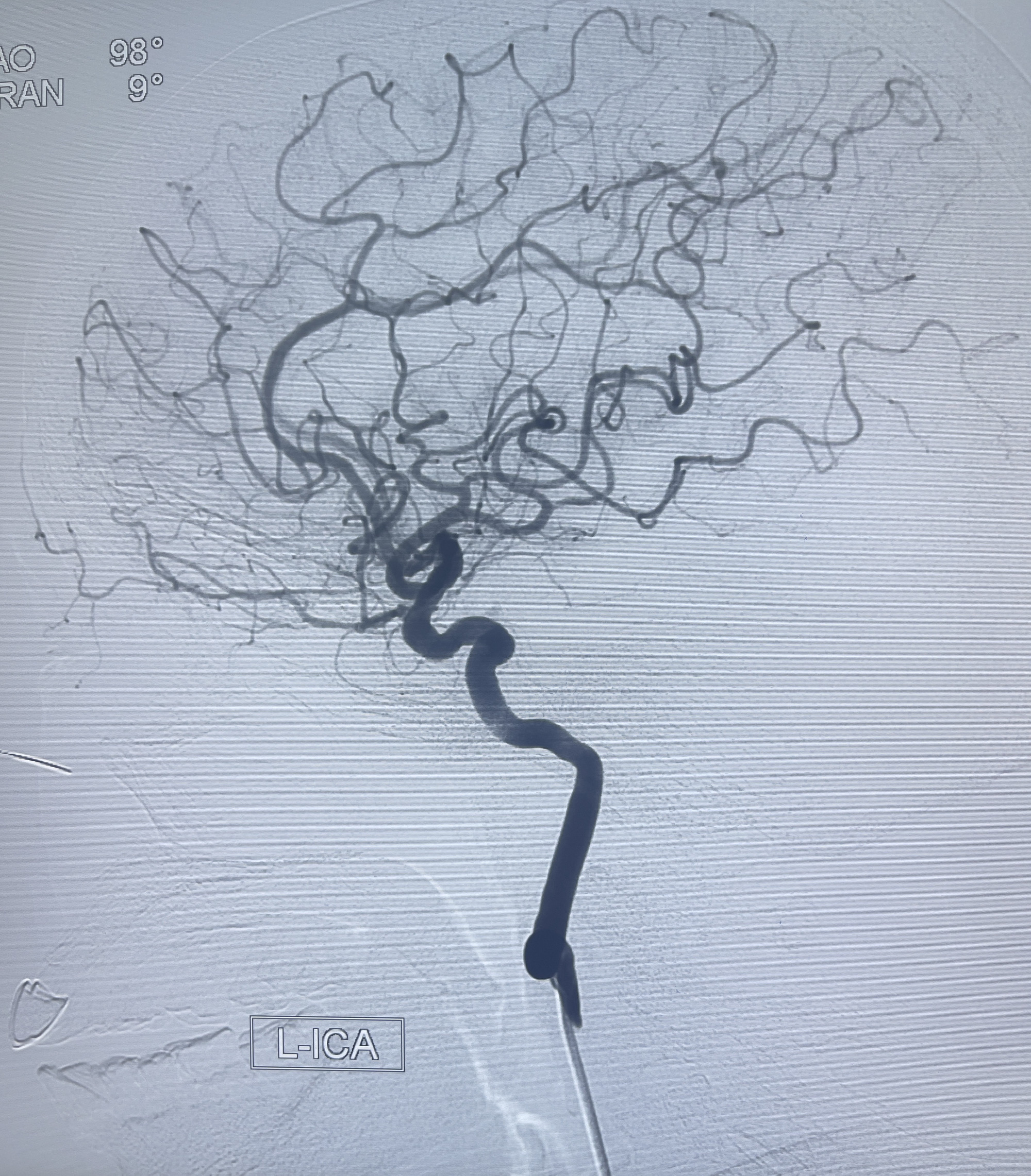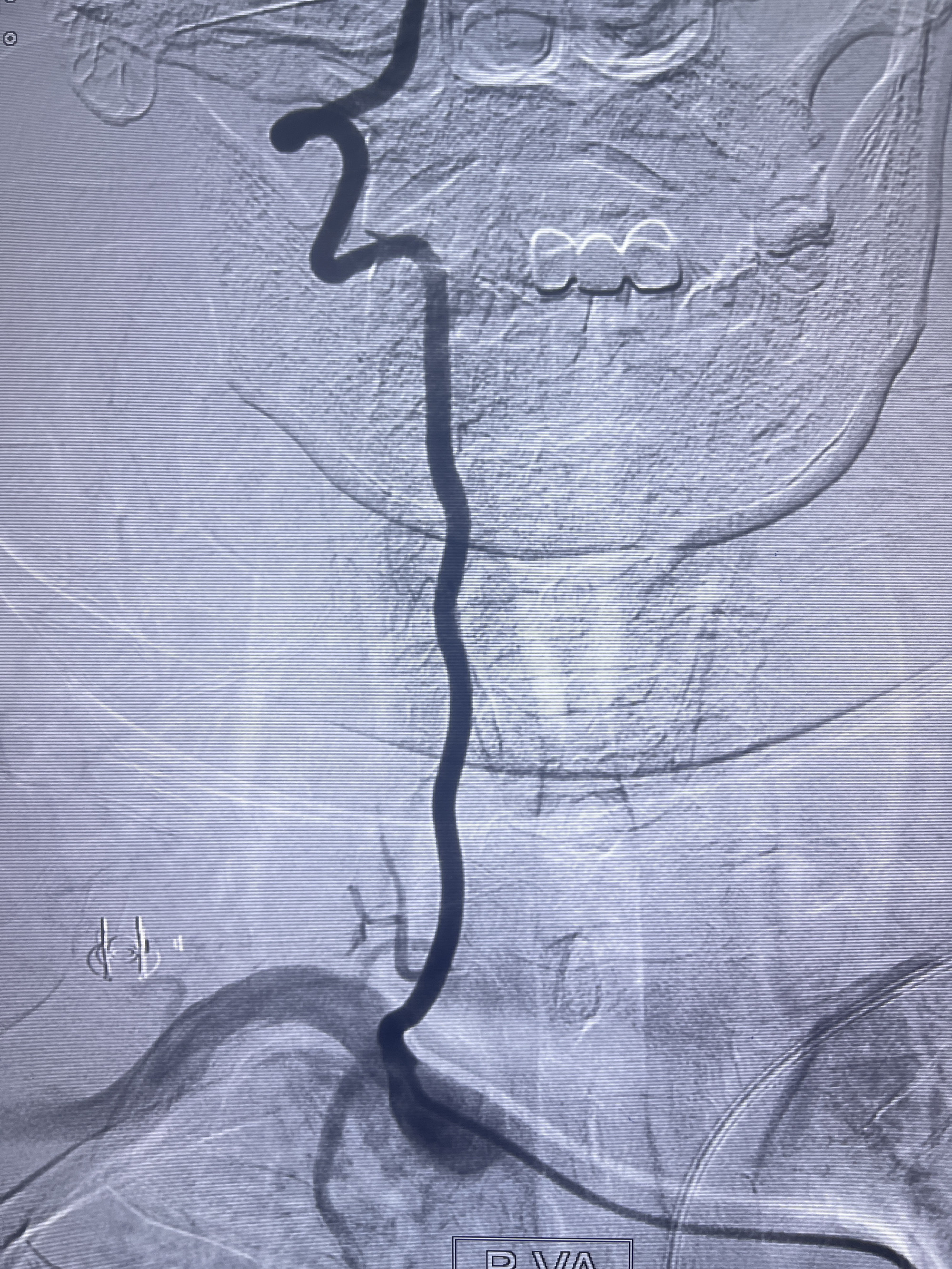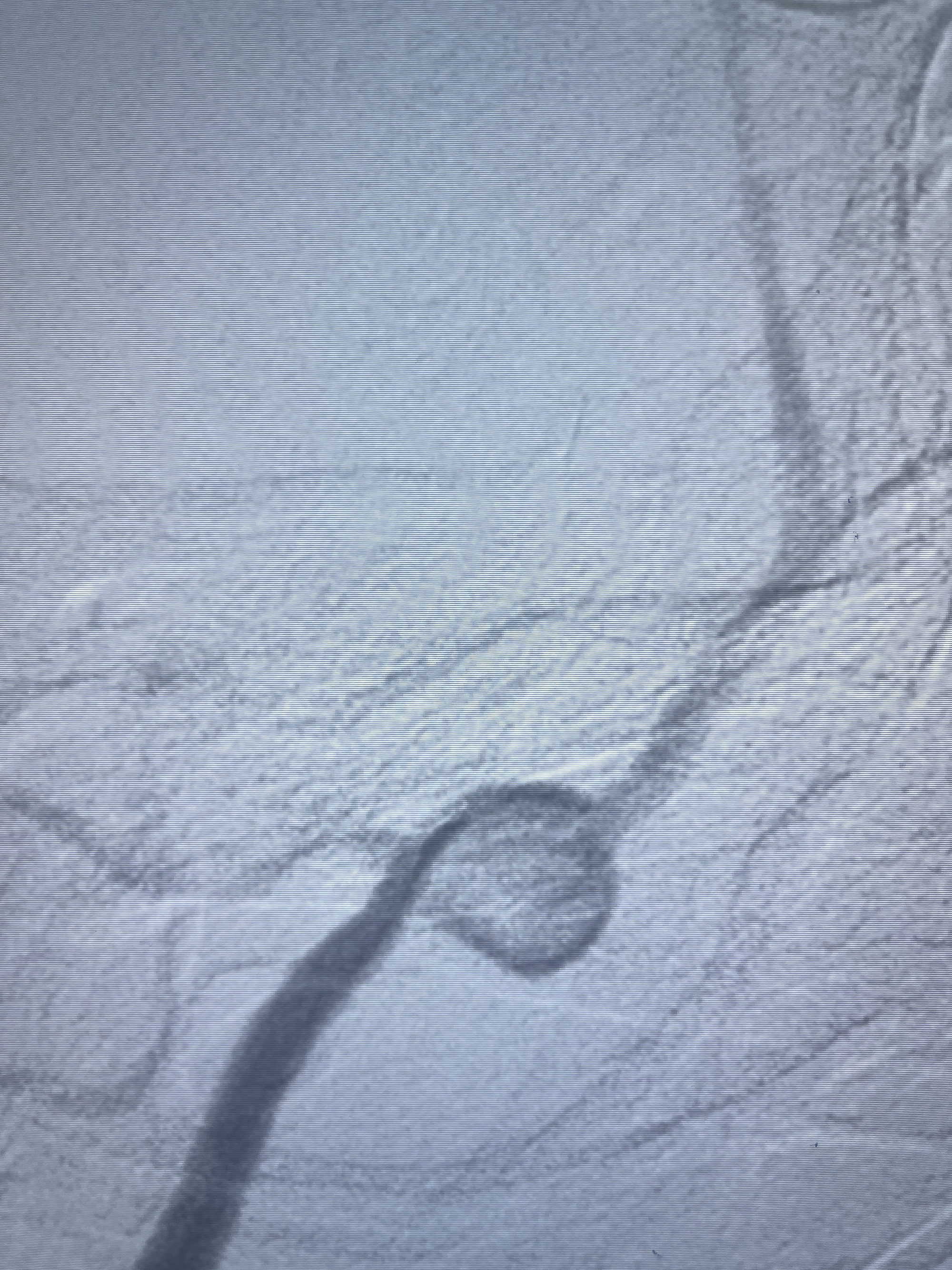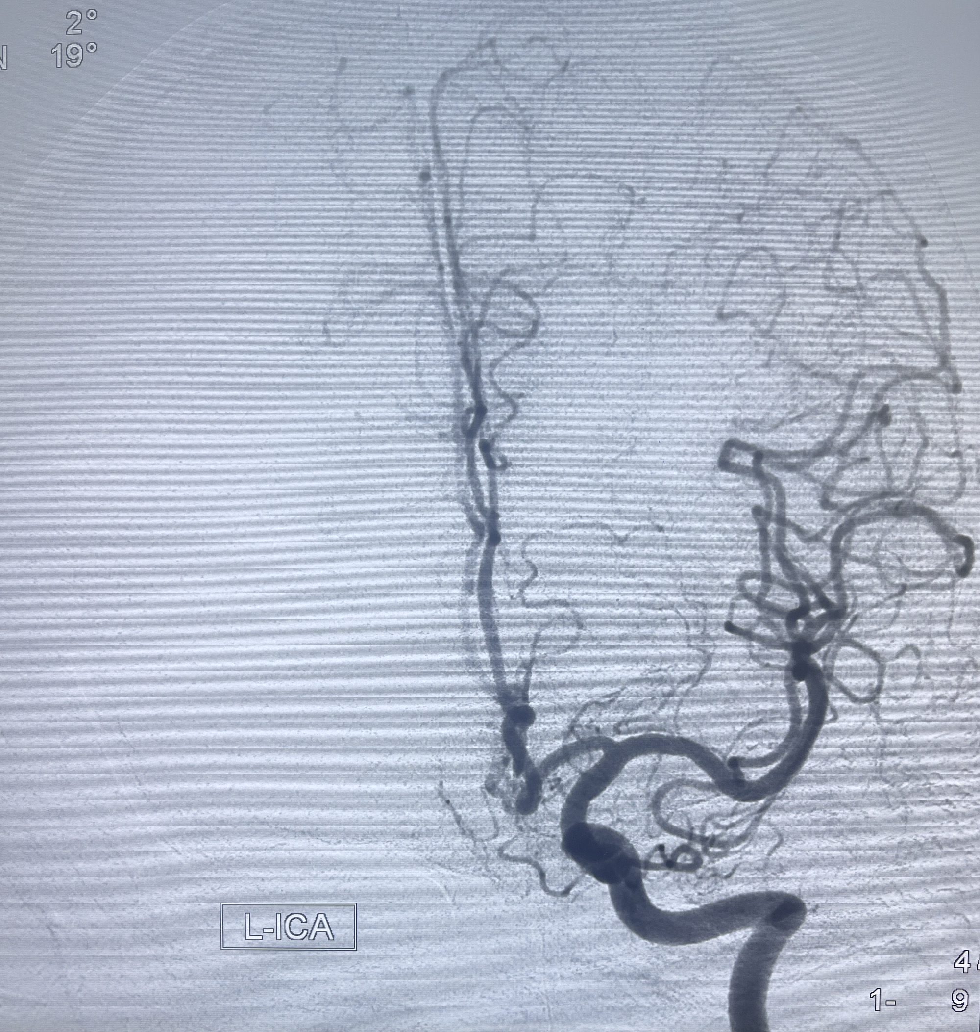 202.04.28脑血管造影:右侧大脑后动脉远段闭塞,右侧椎动脉V4段可见“囊状造影剂填充影”,大小7.64*7.65mm,可见PICA由动脉瘤发出;