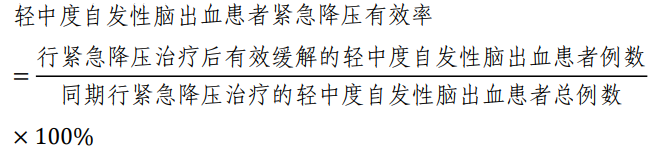 定义:行紧急降压治疗后有效缓解的轻中度自发性脑出血患者例数占同期行紧急降压治疗的轻中度自发性脑出血患者总例数的比例。