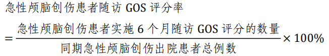 定义:随访中实施6个月GOS评估的急性颅脑创伤患者例数占同期急性颅脑创伤出院患者总例数的比例。