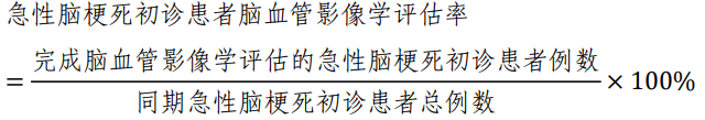 定义:完成脑血管影像学评估的急性脑梗死初诊患者例数占同期急性脑梗死初诊患者总例数的比例。