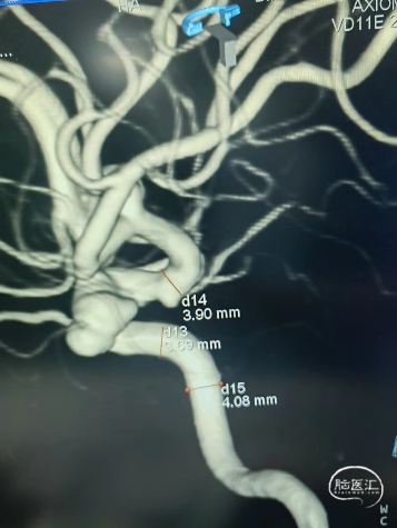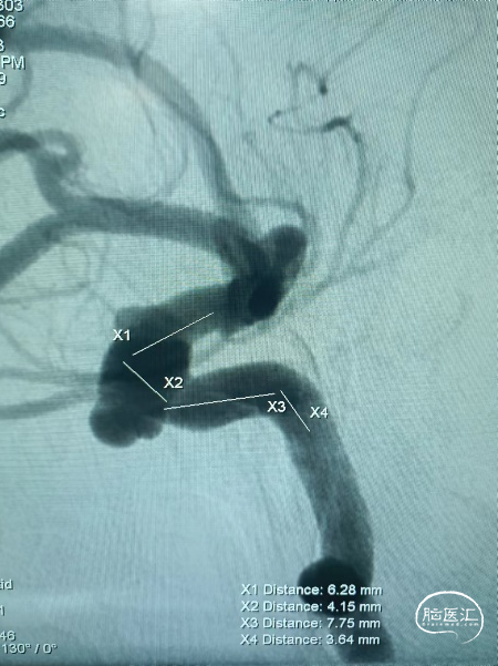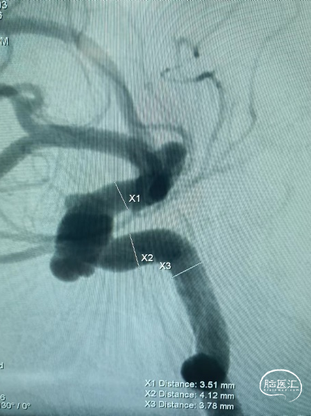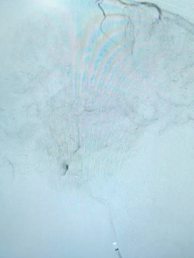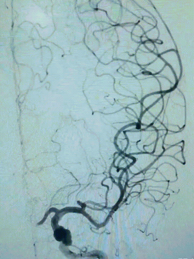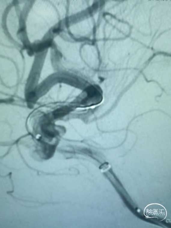3、多体位造影,确认支架头端没有覆盖脉前动脉。