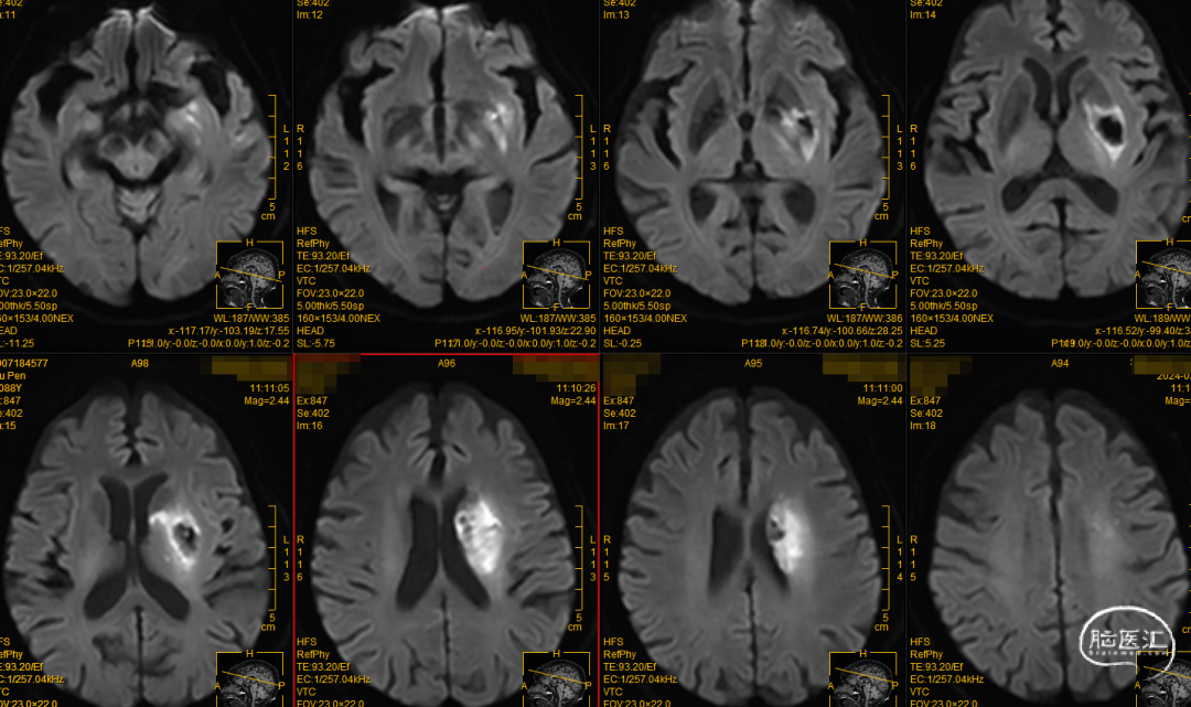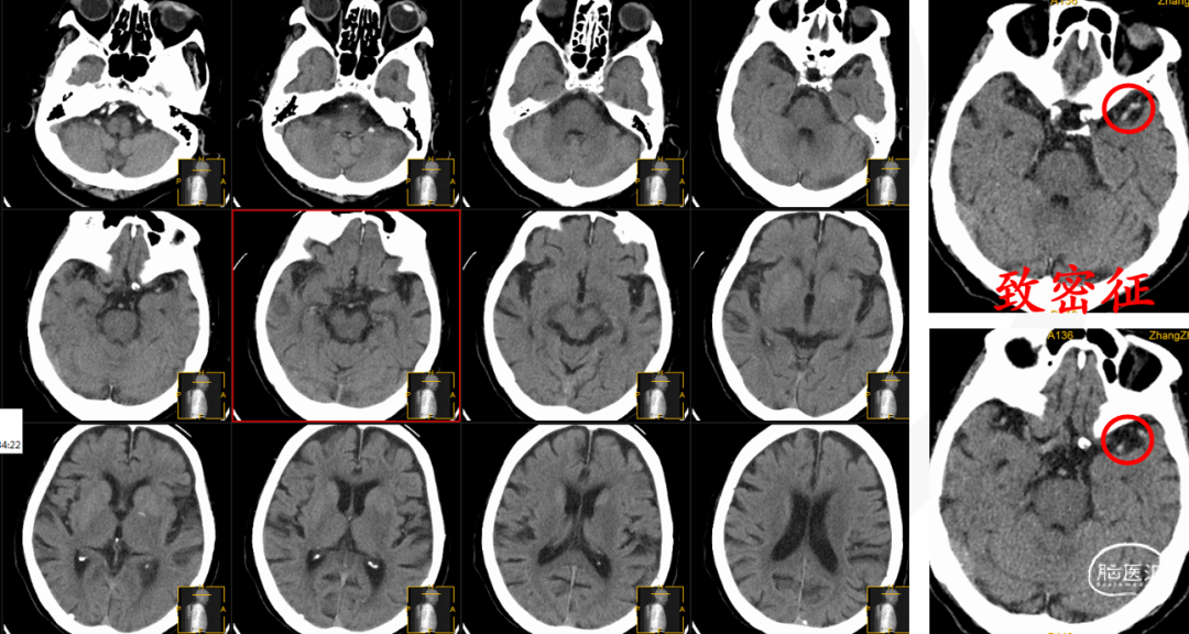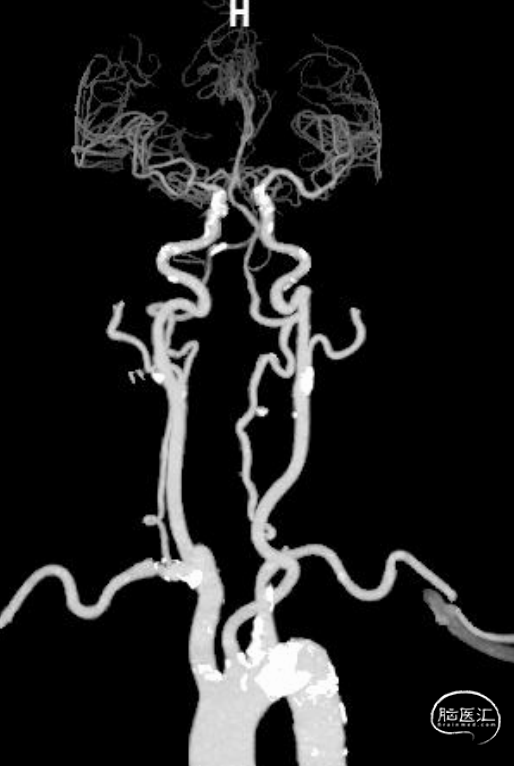 入院查体:体温 36.5℃,脉搏 110次/分,呼吸 19次/分,血压 153/90mmHg。NIHSS 16分;发病前mRS 0分,发病后mRS 5分。运动性失语,双眼球活动向左侧凝视,右侧鼻唇沟浅,右侧口角低,伸舌偏右,右侧病理征阳性。