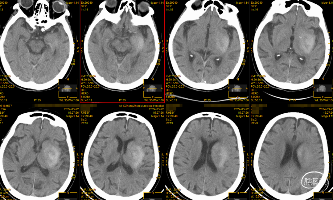 复查颅脑CT提示渗血吸收,予5mg利伐沙班抗凝。