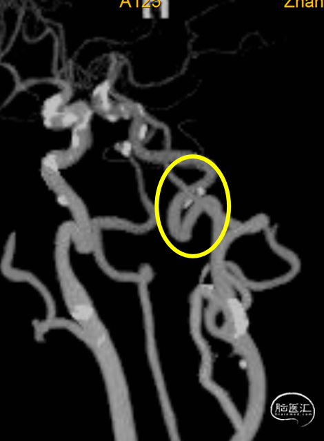 6F心玮吞川抽吸导管尝试“裸行”通过眼动脉,但于眼动脉开口处受阻。