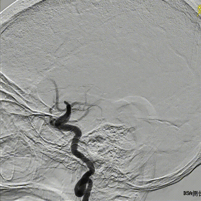 6F长鞘送至左侧颈内动脉C1段近端,6F心玮吞川抽吸导管内衬0.018inch支撑导丝,顺利通过C1迂曲段。