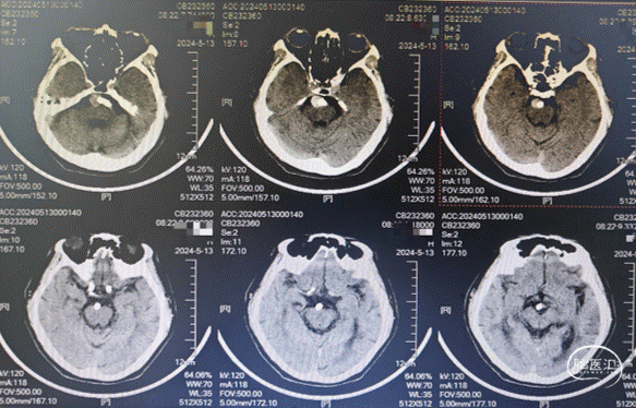 现病史:患者缘于入院3天前无明显诱因下出现头痛,搏动性头痛,无发热,无视物旋转,无恶心,无肢体抽搐等,就诊于合肥市第一人民医院行头颅CT平扫示:“基底动脉局部结节样影,动脉瘤?颅内多发腔隙性脑梗死”。患者及家属为求进一步治疗就诊我科,拟“基底动脉动脉瘤”收住。病程中,患者神志清楚,精神一般。