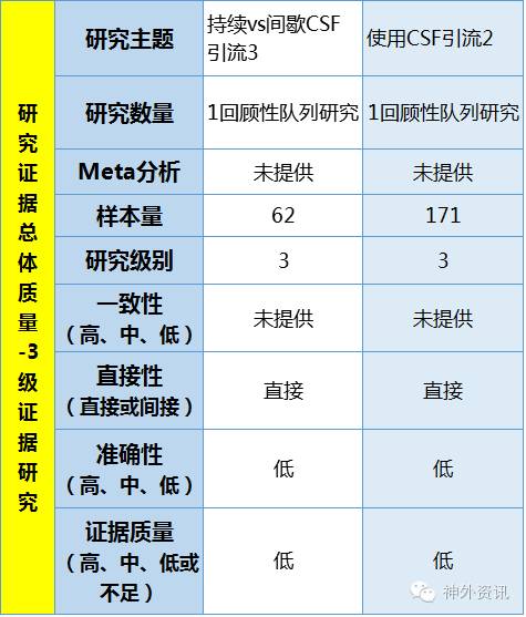 表4-2总结了脑脊液引流的III类临床证据研究证据。