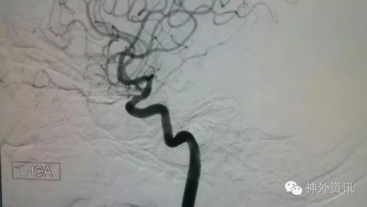 术后一周3-D斜位未見BBA残留、复发,IcA管腔略有狭窄,远端血流正常!