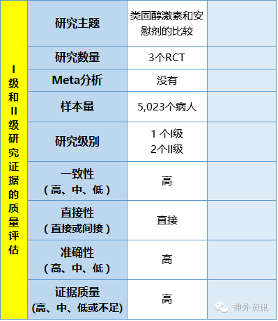 表7-3列出所有关于使用类固醇激素的III级临床研究。