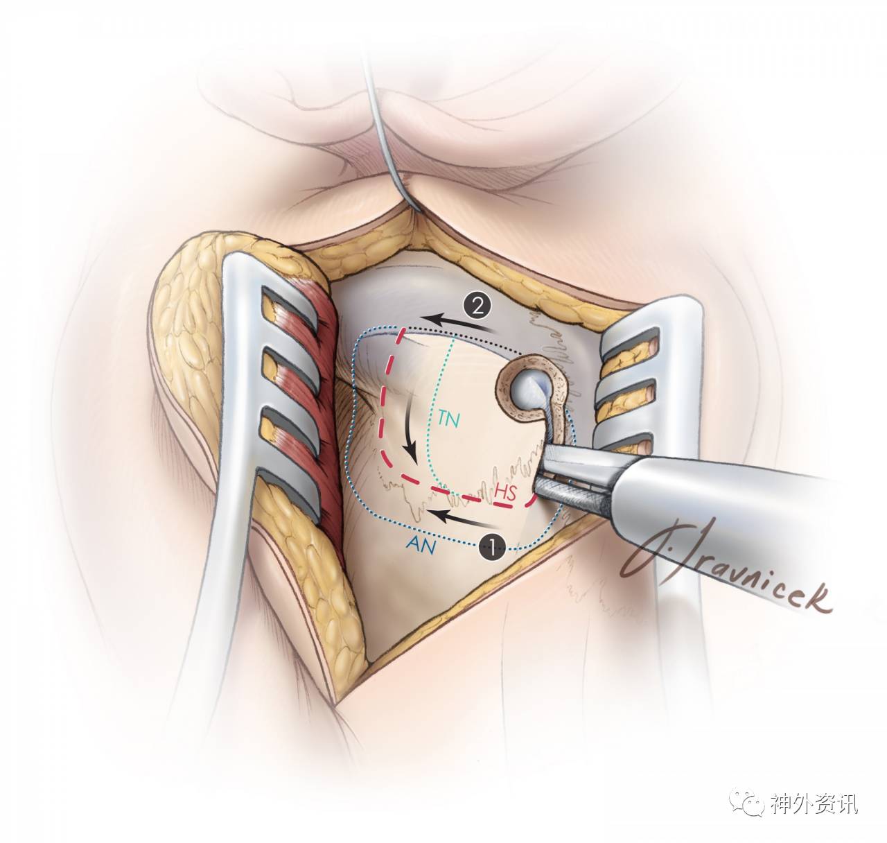 和广泛接受的直线形切口相比,使用Walter Dandy提出的这种倒“U”形切口具有许多明显的优势: