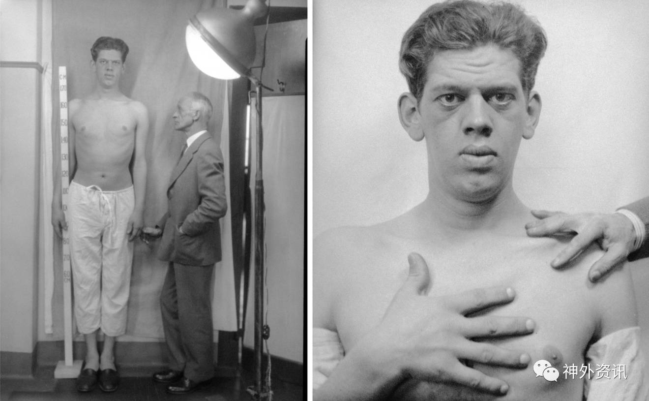 图1. Cushing行医生涯始终保持对垂体手术的浓烈兴趣。在这几张Cushing与病人的合照中,他展示了肢端肥大症的细节(由耶鲁大学库欣脑肿瘤注册中心提供)。