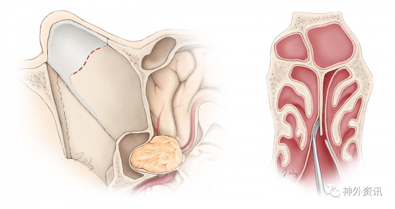 蝶鞍骨质与硬膜的暴露程度,常常决定了肿瘤切除的程度。