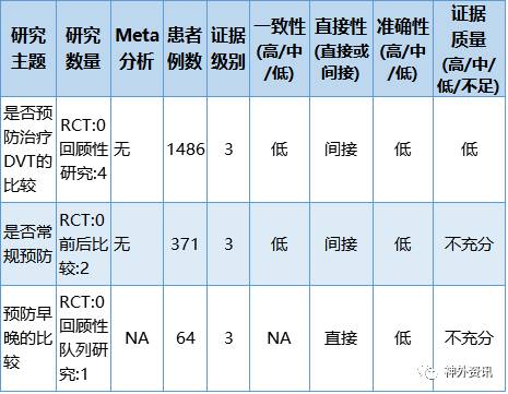 关于深静脉血栓预防3级研究的证据总结于表10-2.