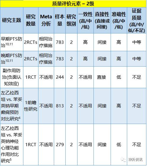 表11-2. 癫痫预防的二级证据研究汇总
