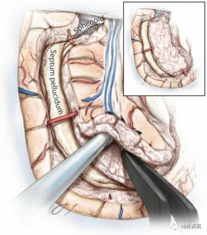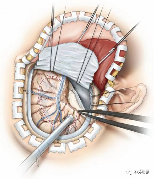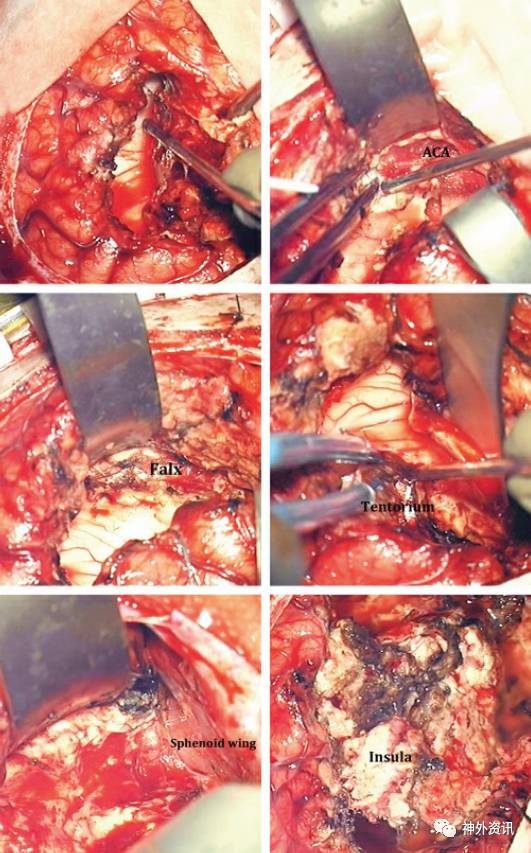 术中需要仔细保护大脑中动脉的大的皮层分支,保护远端皮层的功能,最大程度减低可能导致的梗塞。