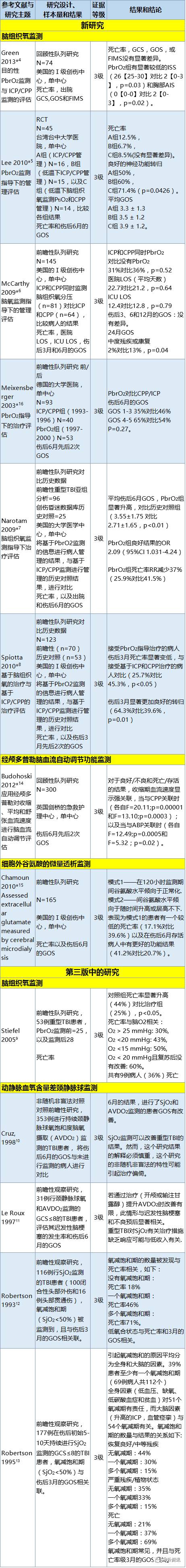 表14-3. 证据汇总---3级证据研究(进一步脑监测)