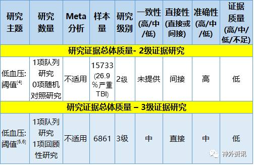 假如研究仅包括严重创伤性脑损伤(TBI)患者或其结果按严重性分开的话,间接证据不是直接适用的。由于研究设计的关注点所限,3级研究直接证据的适用性难以评估。