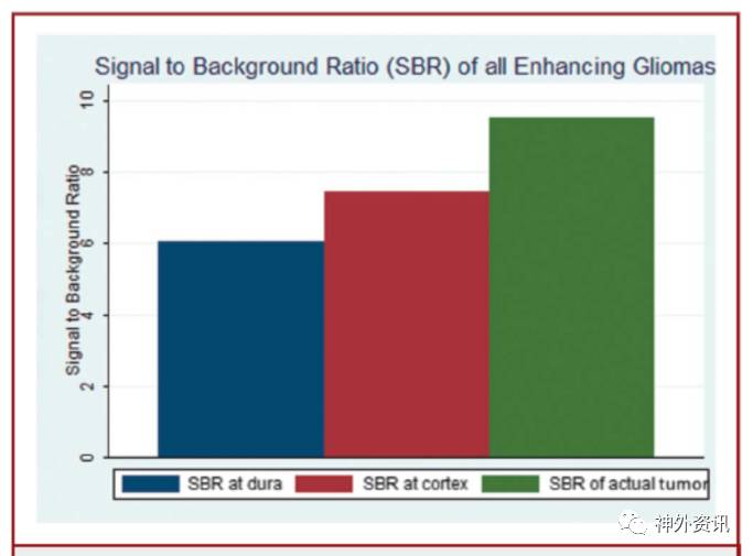 图1. 硬膜、皮质和肿瘤等不同部位的荧光信号强度与背景信号强度的比例。