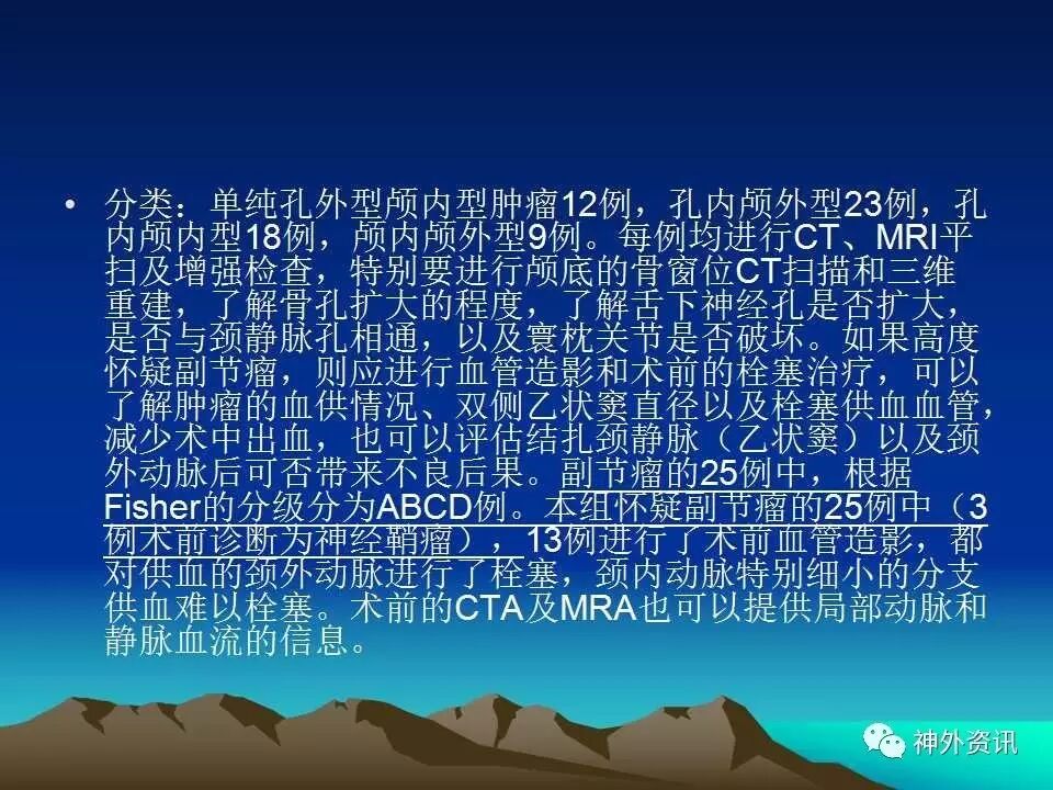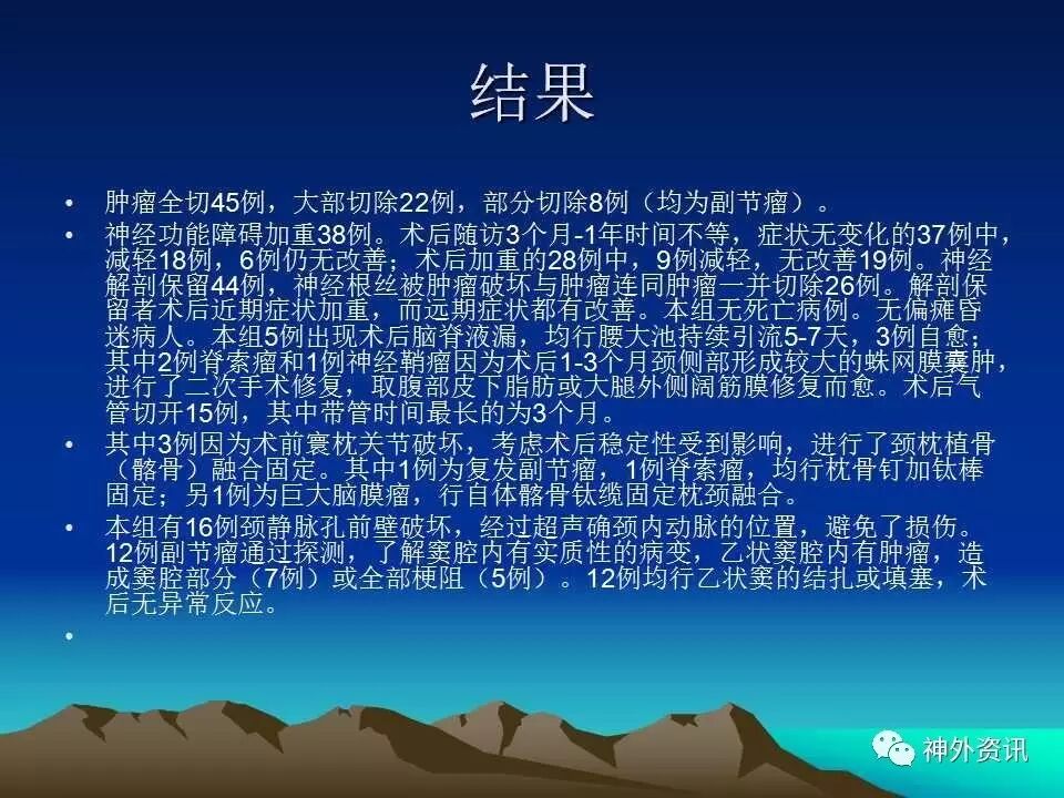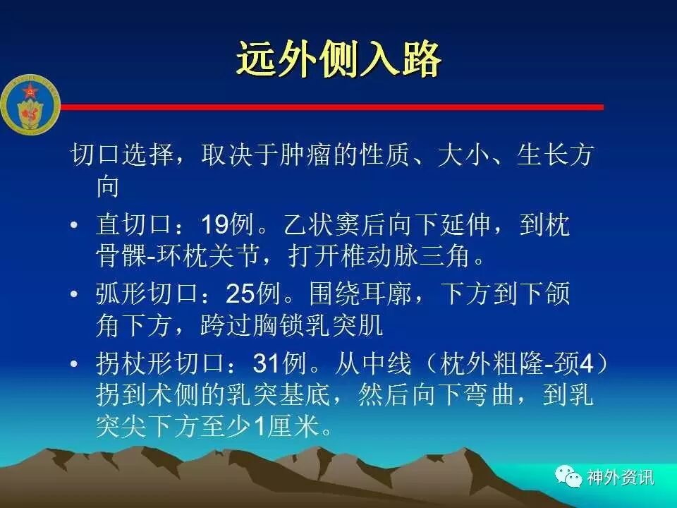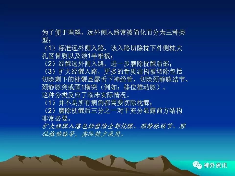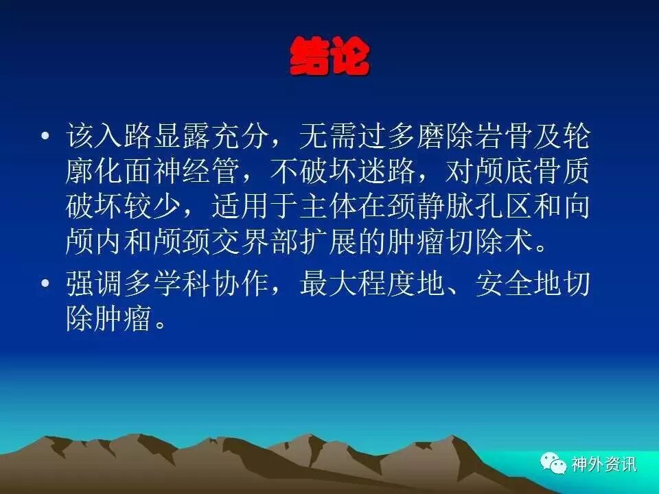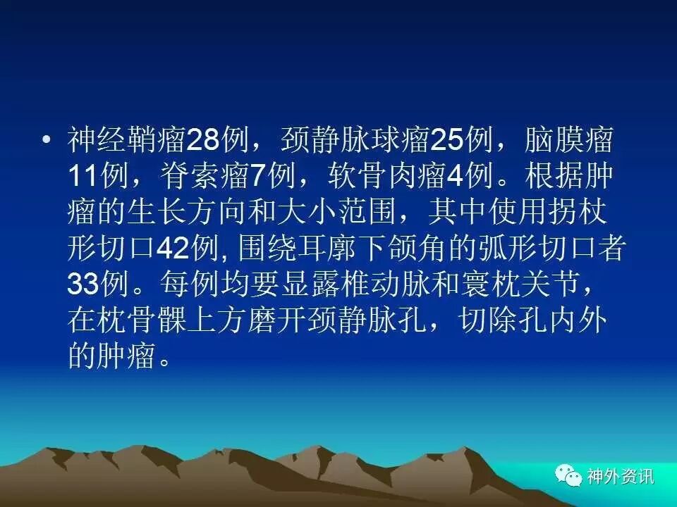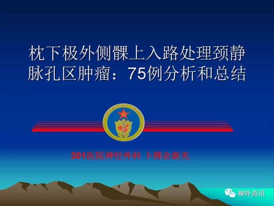 今天为大家分享的是《正海-妙术视界》第三十五期,由中国人民解放军总医院神经外科卜博教授在2016年中国医师协会神经内镜/微侵袭/颅底外科学术大会上带来的主旨演讲“枕下极外侧髁上入路处理颈静脉孔区肿瘤:75例分析和总结”精彩视频及PPT。视频及PPT内容较多,但非常精彩,欢迎观看、阅读。