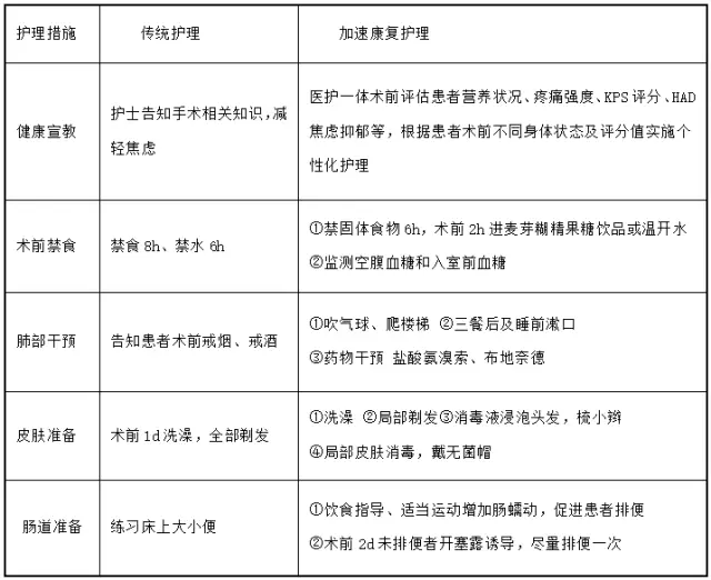 传统护理与ERAS护理比较