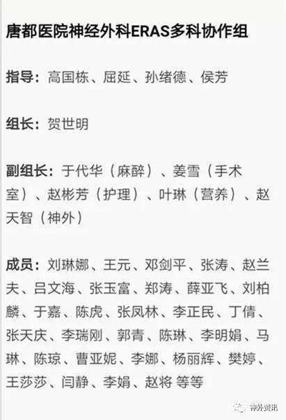 唐都医院神经外科ERAS协作组成员