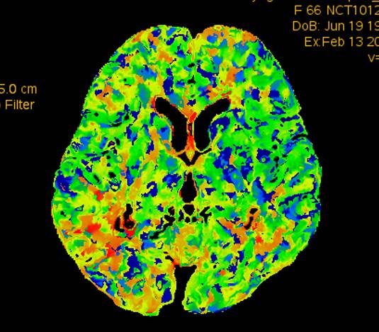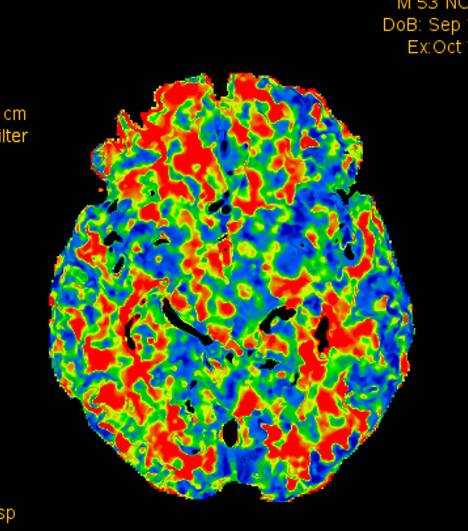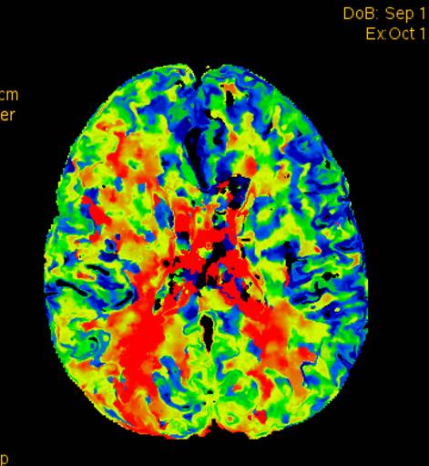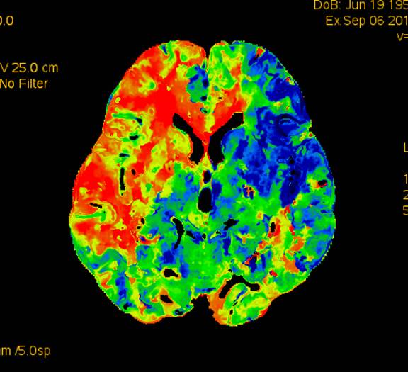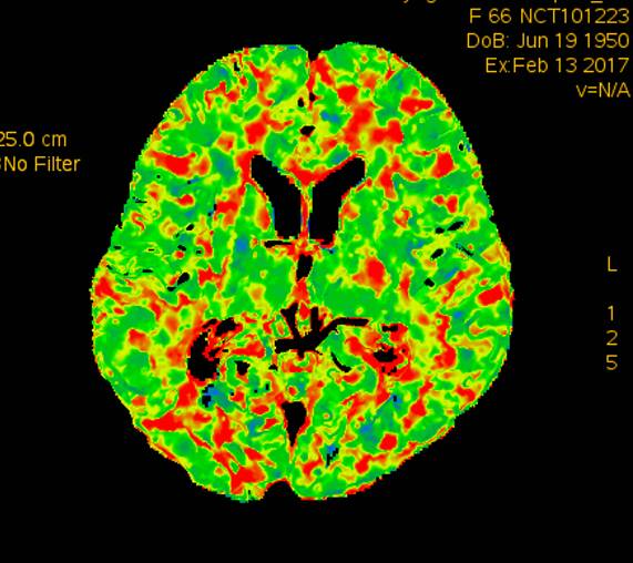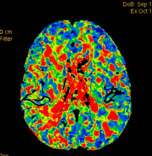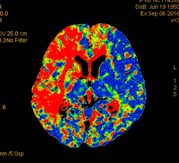 术前灌注成像,右侧大脑半球灌注较差。