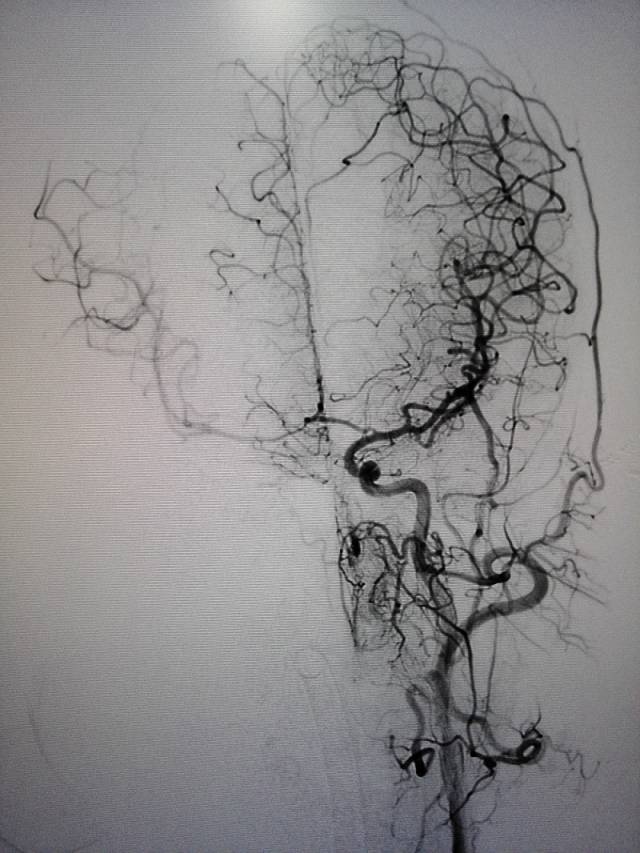 术前三个月造影:右侧颈内动脉几乎不显影。