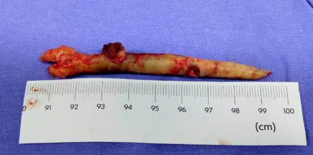 手术过程:手术先切除颈总动脉动脉远端斑块,自远端颈内动脉处缝合至颈总动脉远端,夹闭颈总动脉远端,开放颈内动脉及颈外动脉,便于颈外动脉经颈内动脉向颅内代偿供血。再切除颈总动脉近端斑块,缝合后植入动脉鞘。视频如下。