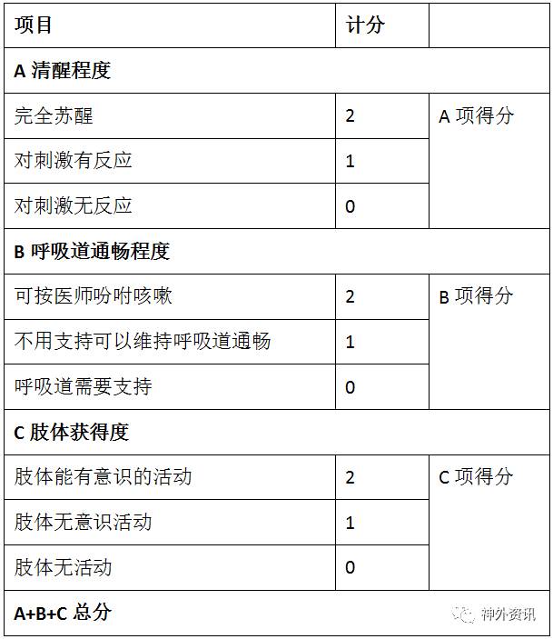 注:三项总评分在4分以上方能离开手术室或恢复室
