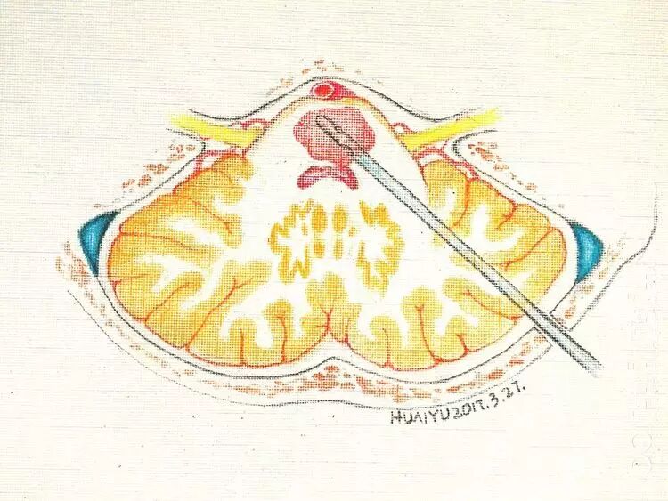 我们团队曾经选择性地通过显微外科手术方法,尝试通过“颞下入路”、“乙状窦后入路”、“小脑延髓裂入路”分别对自发性脑干出血外科治疗。个人认为,显微外科手术治疗脑干出血,入路复杂、暴露困难、操作精细、手术和麻醉时间长,治疗效果不易确定。