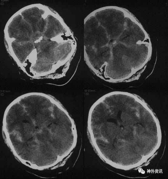 出血当日CT(2017-03-20): 基底池、环池、四叠体池、双侧裂、大脑镰旁广泛蛛网膜下腔出血。