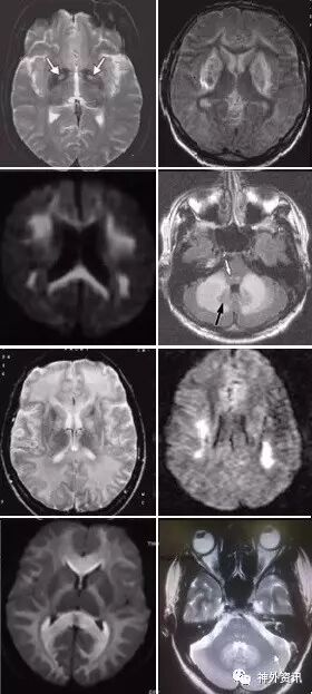 代谢性脑病的原因很多,包括氨基酸、有机酸、脂肪酸、糖等代谢异常,以及线粒体功能障碍等,导致高氨血症、低血糖、酸中毒和能量缺乏,引起脑功能障碍。我们在临床上看到的有缺血缺氧性脑病、低血糖致白质脑病、肝性脑病、肾性脑病、Wernicke脑病、线粒体脑病等。中枢神经系统受累的病灶在磁共振上可出现各种表现。