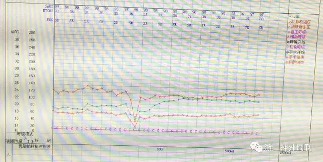 图4. 切除靠近延髓腹侧肿瘤时心率及血压出现一过性的下降。