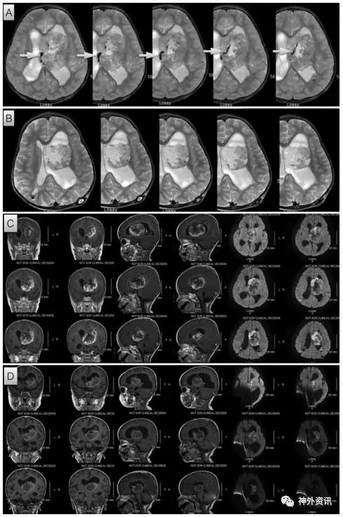 非典型畸胎瘤样横纹肌瘤(Atypical Teratoid Rhabdoid Tumors,ATRT)是一种侵袭性较强的儿童中枢神经系统肿瘤,患儿平均生存时间仅为6月~11月。因肿瘤体积较大、血供丰富和全身血容量储备不足等种种因素,ATRT的全切率不到50%。与ATRT类似的脉络丛恶性肿瘤也是富有血供的肿瘤,手术中出血风险较高。从1990年开始,儿童脉络丛恶性肿瘤常规行术前辅助化疗,肿瘤全切率从原先的26%上升到72%。ATRT术前行辅助化疗的患儿,到目前为止仅3例。美国路易斯维尔大学医学院神经外科的Meena Thatikunta等在2017年3月《J Neurosurg Pediatr》在线上报道第4例术前进行辅助化疗的ATRT患儿。
