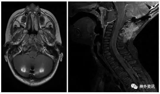 图2. 术后MRI显示斜坡脊索瘤全切除。