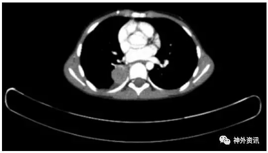 图4. 术后4.6年PET-CT结果显示右肺下叶转移瘤。