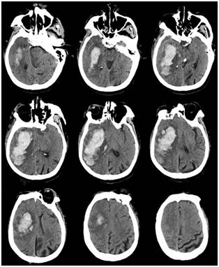 Fig.1入院时头颅CT示右侧基底节区脑出血