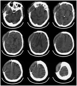 Fig.2术后复查头颅CT示血肿大部分被清除