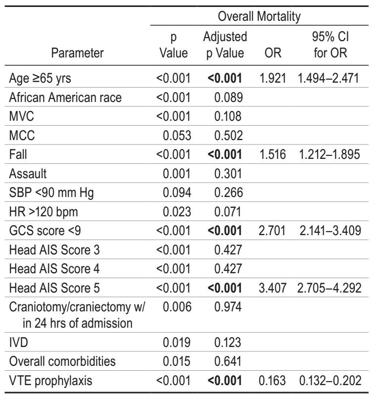 最后作者指出, ICP监测方式对于重型颅脑外伤患者的存活率及神经功能预后并无影响;深静脉血栓的防治可能降低TBI患者死亡率。