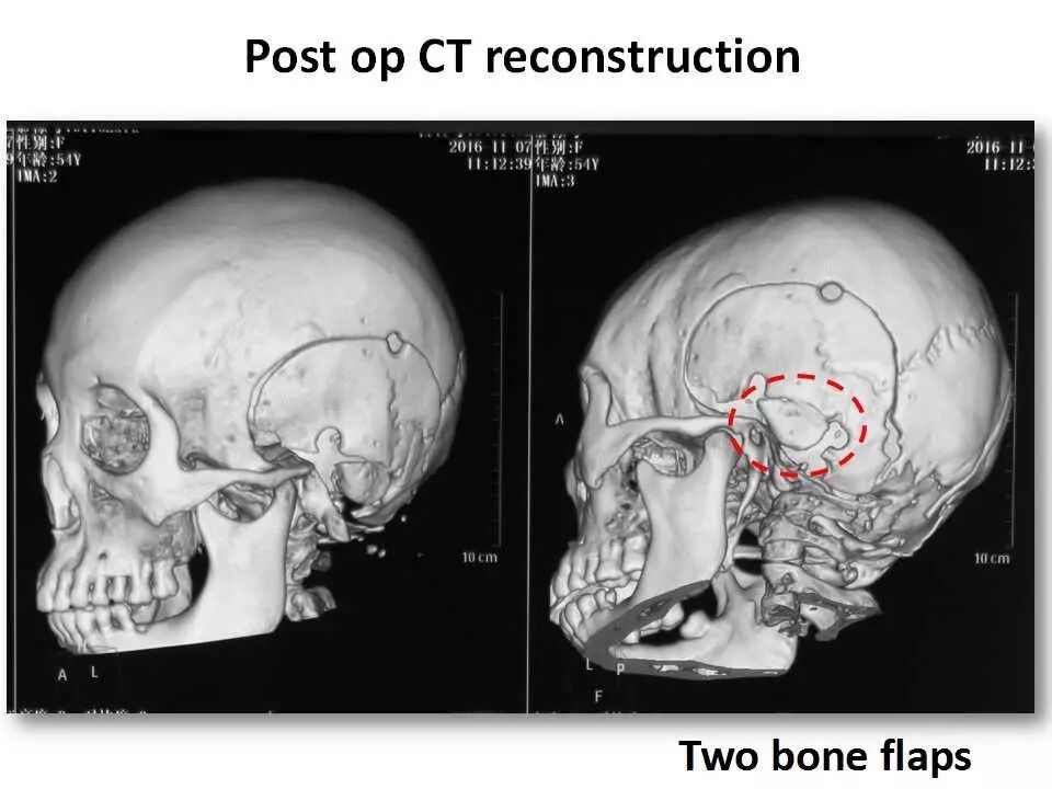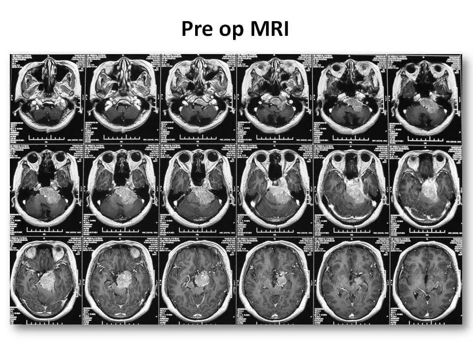 此处我们分享一例采用经典乙状窦前入路切除巨大岩斜脑膜瘤的病例。由于患者术前听力已经丧失,故我们磨除了患侧半规管,以求更好的暴露肿瘤中线斜坡基底、特别是中线对侧部分肿瘤的基底。不当之处,请批评指正!