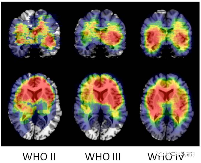 进一步,我们将这些肿瘤分为WHO II级、III级和IV级,其位置分布特征如图2。