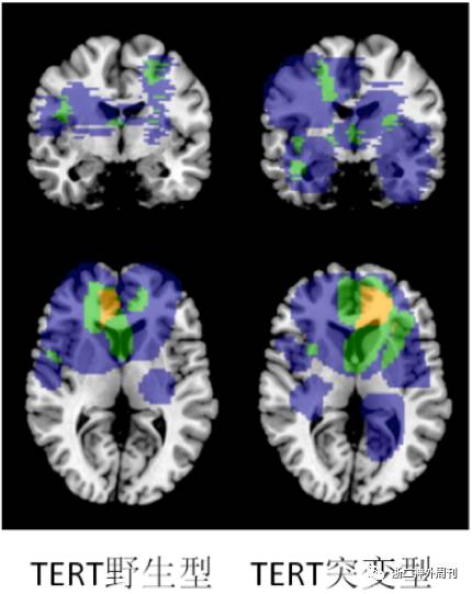 图5. 不同TERT基因启动子突变状态的胶质瘤的位置分布特征。