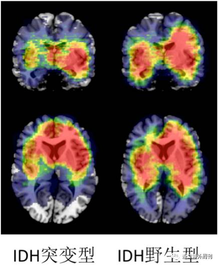 图4. 不同IDH基因突变状态的胶质瘤的位置分布特征。