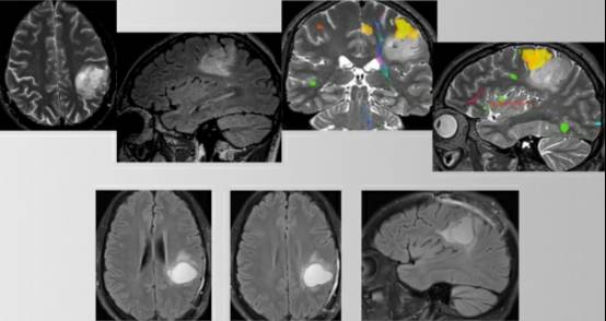 病例1:男性,32岁,癫痫症状。诊断为低级别胶质瘤,位于顶叶中央小叶后部。