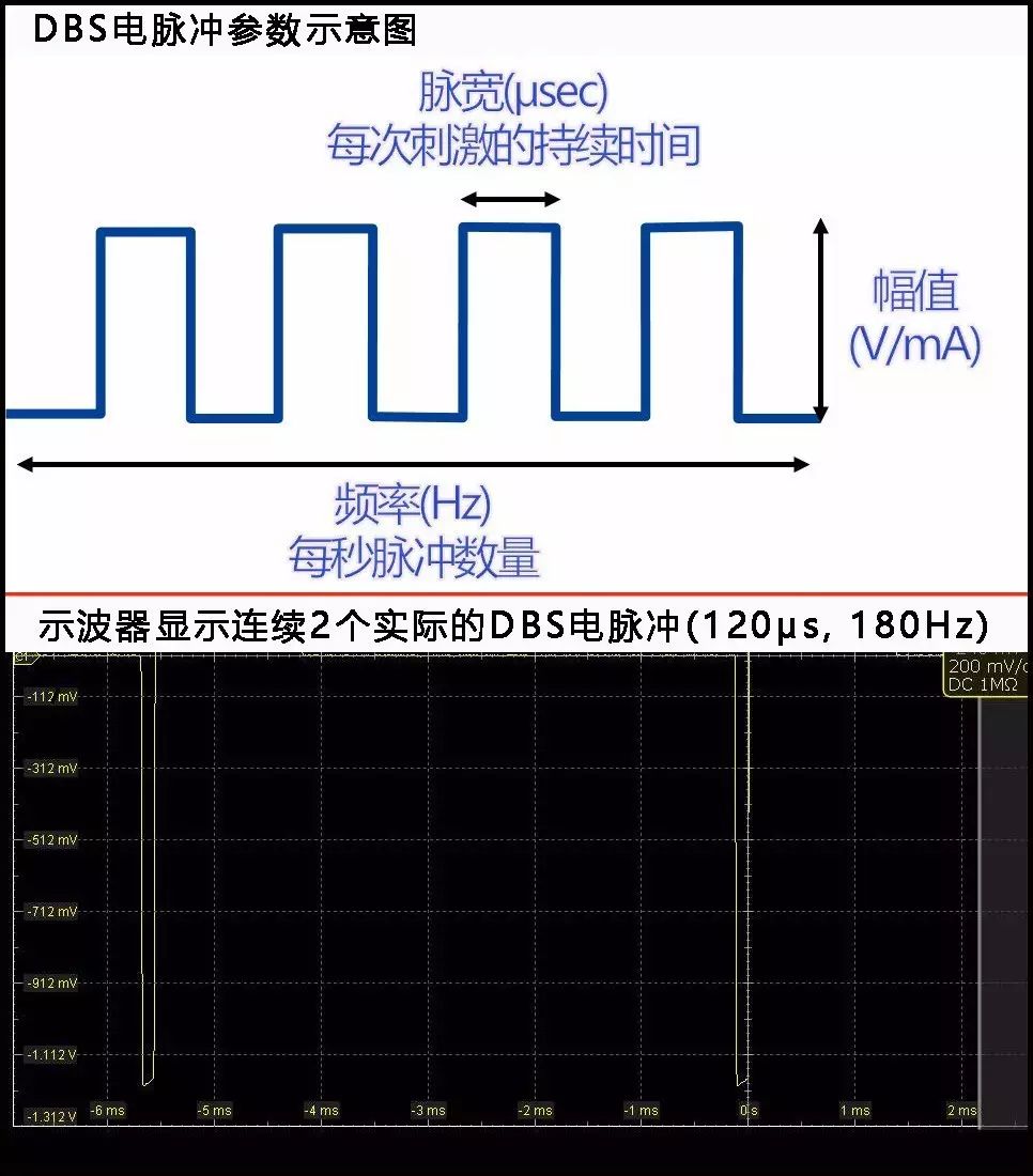 程控的过程就是我们调节电脉冲的过程,目前临床上应用的 DBS 产品发出的电脉冲都是连续规律的方波。不同的电脉冲我们可以用以下三个参数来描述: