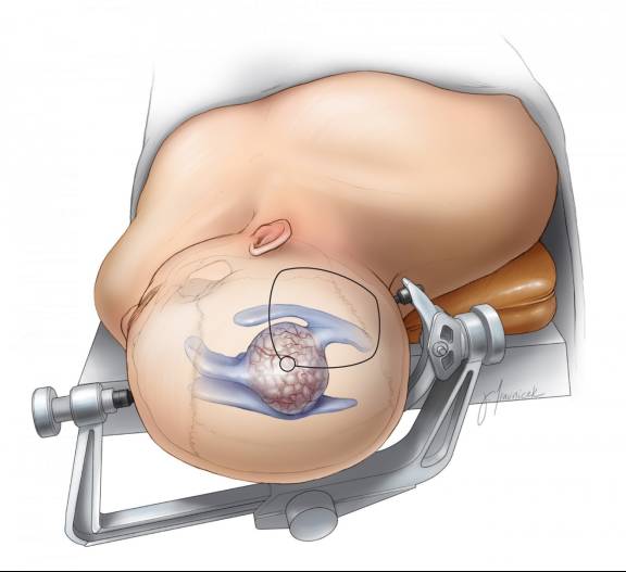 不同类型的肿瘤即使尺寸接近,但因为肿瘤的软硬质地、均一性和血供程度的不同,也需要不同的颅骨开窗尺寸和硬膜内操作通道, 这样才能为全切肿瘤提供所需的手术操作角度。深部的肿瘤限制了操作空间(“圆锥”现象)。动态的脑牵拉技术以及合适的脑内路径(沿肿瘤长轴)能保证在尽可能少的骚扰下最大程度的安全有效处理深部病变。