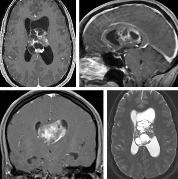 侧脑室内肿瘤并不常见,但因入路困难及毗邻重要的间脑结构,对手术技术是一个特别挑战。此处肿瘤一般是生长缓慢的良性肿瘤,直到体积很大时才被察觉。