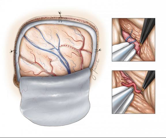 保护桥静脉很重要,这依赖于手术通路的设计。推移或松解桥静脉可以使硬膜瓣牵开更完全。